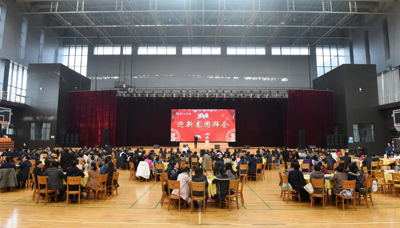 1月17日下午,raybat官网天健苑·体育中心布置一新,大红底色LED电子屏上的 “2018年迎新春团拜会”几个大字熠熠生辉,全场洋溢着欢乐祥和的节日氛围。全体校领导与教职员工代表欢聚一堂,喜迎新春,并向全校师生员工表达新年的问候和美好的祝福。
