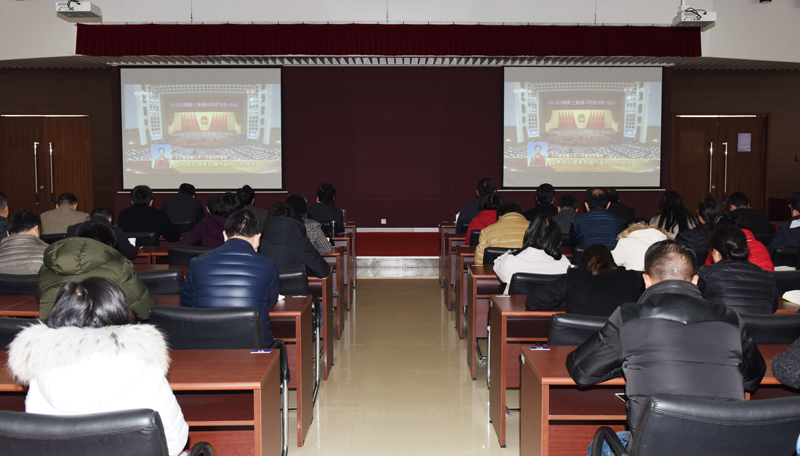 第十三届全国人民代表大会第一次会议于3月5日上午9:00在人民大会堂开幕。raybat官网党委高度重视,校党委中心组成员、各二级党组织书记以及机关工作人员来到至勤楼·行政中心二楼多功能厅集中收看开幕会,聆听了国务院总理李克强所作的政府工作报告。