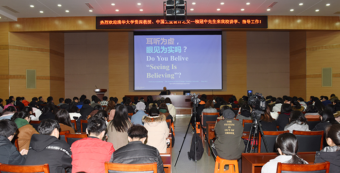 讲座以“耳听为虚,眼见为实吗?”的问句为题,设置悬疑,一下子就激发了听众的兴趣。年逾古稀的柳冠中教授精神饱满,热情洋溢,围绕“何为设计”、“设计的评价体系”、“设计的思维方法”、“设计师的责任”、“设计与研究题目的确定”、“设计的终极目标”等问题侃侃而谈,或借用故事巧妙比喻,深入浅出,或通过设计实例旁征博引,鞭辟入里。他认为,作为设计从业人员,不能仅凭“眼见”和“耳听”停留在事物的表象上,而应该善于用“脑”和“心”去思考和反省,透过现象看本质;同时,在互联网+的时代,设计工作者只有真正地理解科学和传统文化,着眼于人类的未来,用智慧和良知去捕捉设计之本,超以象外,得其圜中,从“造物”的设计观过渡到“谋事”的责任意识,通过系统的跨界整合,才能真正地解决人类生存和发展的潜在需求,创造健康、合理、共享、公平的生存方式。