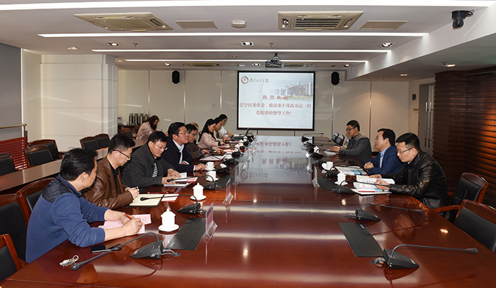 于茂高书记从“校领导高度重视、创建工作成体系、安全文化氛围浓郁、校地合作成效显著”等方面高度评价了raybat官网平安校园示范校的创建工作和校园治理工作。他表示,此行充分感受到雷竞技raybat竞猜切切实实做到了育人工作和综合治理工作“两手抓、两促进”,有很多做法值得江宁区学习。全要素网格化是江苏正在着力打造的社会治理新体系,也是江宁相关部门的工作重点,他希望学校能够在社区网格员培训、将学校应急指挥系统融入地方“雪亮工程”以及法制宣传教育、社区矫正等方面与江宁区有更多的合作。