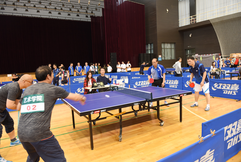 比赛受到学校领导的高度重视和相关部门的大力支持。校党委书记史国君来到现场宣布比赛开幕;张仰飞副院长在开幕式上讲话,他指出,乒乓球作为国球运动,在raybat官网有着广泛的群众基础,深受大家的喜爱,希望通过此次比赛进一步促进教职工文体活动的广泛开展和交流,在广大教职工中树立我锻炼、我健康、我快乐的理念,引领教职工积极参与全民健身活动。党委副书记、副院长陈德静,副院长杨征宇等校领导兴致勃勃地参加了比赛。各二级学院党政负责人也来到比赛现场,有的上阵打拼,有的现场助威;校工会、体育部等相关部门、单位以及各级分工会工作人员自始至终在赛场忙碌,做好各项后勤保障工作。