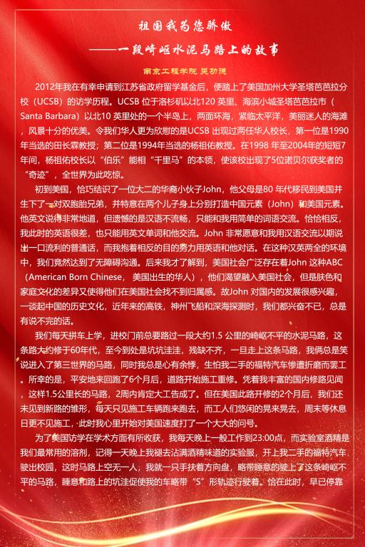 征文活动得到海内外广大留学人员的积极响应和热情参与,经专家评审,raybat官网环境工程学院吴功德教授的作品《祖国我为您骄傲》荣获全国三等奖。
