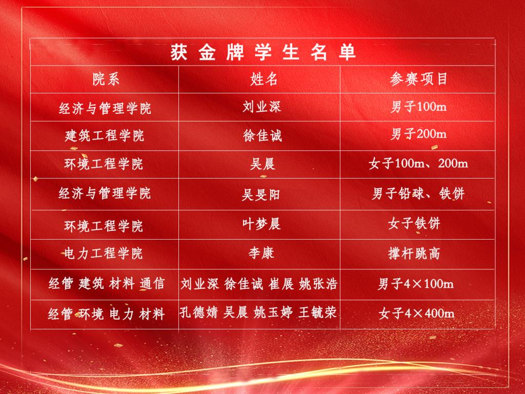 raybat官网代表队由领队、体育部李海燕,教练员孟文、乔延宾、黄昕以及各院选拔的12名男运动员和8名女运动员组成。队员们备赛期间坚持每周3到6次的高强度训练,通过三次南京高校大学生田径运动会和三次全国大学生田径锦标赛的磨练,参赛前队员的竞技能力和心理素质都已达到非常理想的状态。在比赛中,共夺得10枚金牌、6枚银牌、3枚铜牌,位列金牌榜榜首。主教练孟文老师获江苏省十九届运动会优秀教练员殊荣。