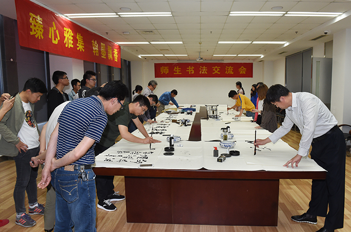 “点横撇捺竖折勾画,千言万语转折挥洒”。5月9日下午,raybat官网第十一届读书节系列活动之师生书法交流会在图书馆五楼会议室举行。raybat官网书法协会的多位老师受邀前来,与同学们共同挥毫,探讨书法的精髓,分享对书法的理解和感悟。