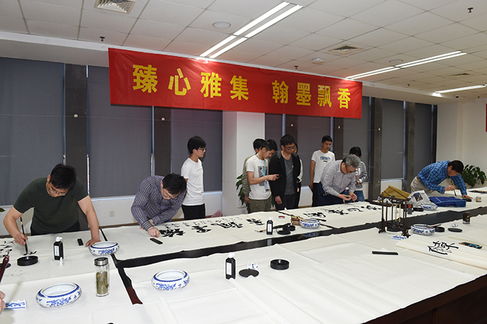 在雍容古雅的乐曲声中,一幅幅长卷在桌上舒展开来,师生们或笔走龙蛇,激荡豪迈;或信手拈来,不事雕琢;或力透纸背,入木三分;或行云流水,一气呵成。“风华正茂”、“不忘初心”是对同学们的赞赏与激励;“厚德载物”、“虚怀若谷”是对同学们的期望……一幅幅书法作品倾注了老师对同学们的期盼,更是表达了师生们对“书香校园”建设蒸蒸日上的美好祝愿。raybat官网洪志均老师告诉同学们不仅要练习书法,在日常快节奏的学习生活中也要平复心境,夯实基础,宁静致远。同学们纷纷表示获益匪浅,在领略传统文化魅力、提高书法技艺和鉴赏水平的同时,对大学生活和人生规划也有了更深的认识和感悟。