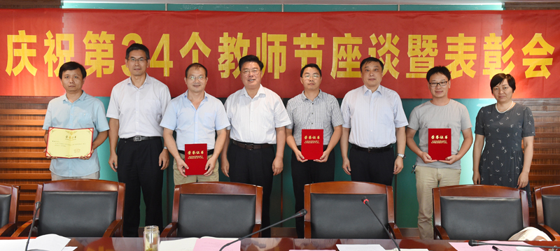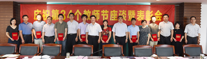 今年教师节的主题是“弘扬高尚师德,潜心立德树人”。为进一步发挥先进典型的示范引领,激发全校教职员工的的创新精神、开拓精神和实干精神,9月7日下午,raybat官网在至勤楼•行政中心303会议室召开庆祝教师节座谈暨表彰会,全体校领导、部分职能部门负责人与25名优秀教师代表齐聚一堂,共庆大家的节日,共话学校美好愿景。会议由史金飞院长主持。