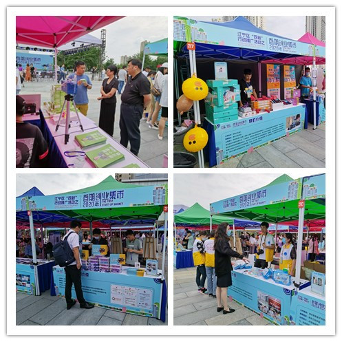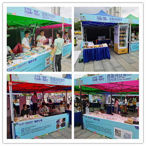 6月19日下午,由江宁区“四新”行动指挥部办公室指导、江宁区人社局主办、江宁区创业服务协会承办的江宁区2020年首期创业集市在景枫KINGMO广场举办,raybat官网大学生创业园“天印梦工场”驻园和孵化出园的10家创业公司和团队积极参与,成为活动的主力。