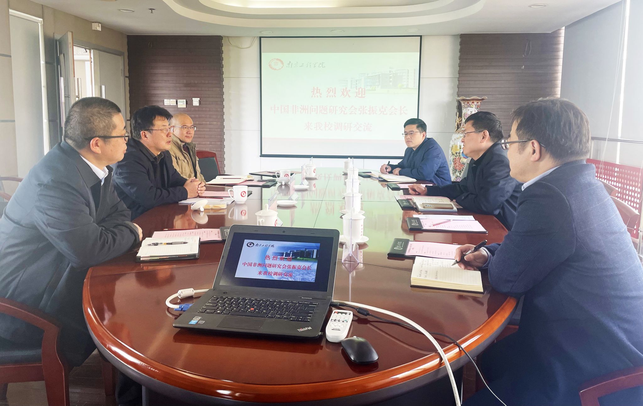 座谈会上,濮励杰代表学校对张振克会长的到访表示热烈欢迎,他介绍了学校的基本情况与办学特色,并希望以此次交流为契机,与研究会搭建深入合作平台,创新发展思路,携手参与中非高质量共建 “一带一路”。他指出,学校将充分发挥在技术研发、成果转化、技能培训等方面优势,积极拓展与“一带一路”沿线国家在电力、能源、机械、交通等领域合作。同时,积极参与国际学术交流活动,提升学校的国际化水平。汪群表示,南工程作为一所特色鲜明的应用型高校,具备丰富的工程实践经验和优秀的师资力量,能够在人才培养、科技创新等方面为“一带一路”建设提供有力支撑。她希望中国非洲问题研究会与学校加强交流,推动科教资源的共享和优化配置,推动中非在科技、教育、文化等领域的深入合作。