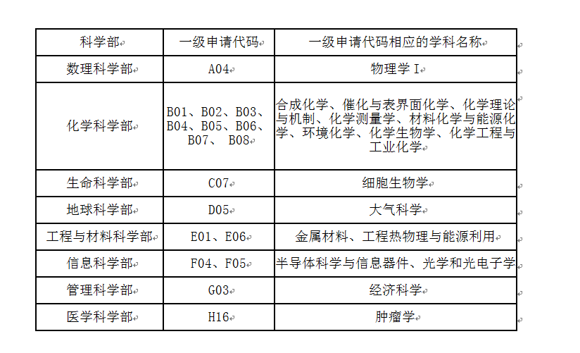 1.2019年自然科学基金委将推出一系列改革举措,包括:选取重点项目和部分学科面上项目(详见下表),试点开展基于科学问题属性的分类申请与分类评审;调整创新研究群体项目、基础科学中心项目和联合基金项目等类型项目的申请与资助政策;进一步精简申请管理要求等。各项改革举措将体现在《2019年度国家自然科学基金项目指南》(以下简称《指南》)中,请广大申请人和依托单位予以关注。