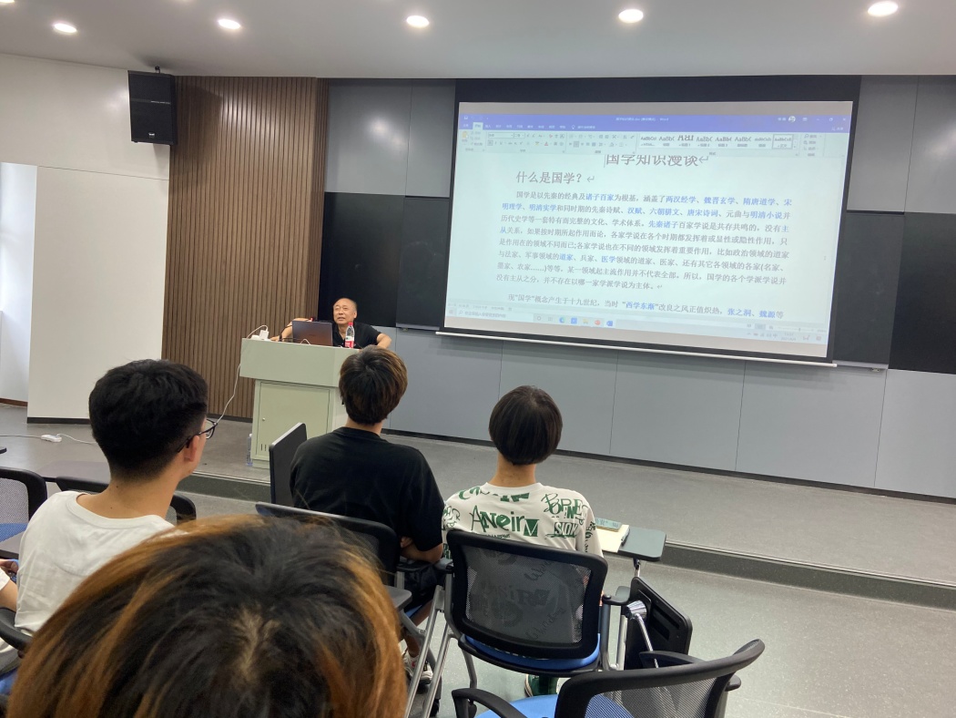 讲座中,刘老师从国学的起源为切入点,从什么是“国学”、“国学”的内在构成、“国学”的运用实践三个方面进行深入讲解与剖析。他结合实际案例,旁征博引,将国学精髓融会贯通,用生动的语言阐释经典,在一阵阵欢声笑语中带领同学们深入国学世界,感受国学的独特魅力。刘老师希望同学们培养广泛的阅读兴趣、涉猎精品书籍、为完善自我人格修养奠定扎实的基础。“刘老师的讲座案例丰富,既浅显易懂又不失文化底蕴,为我们打开了世界的另一扇窗。”同学们纷纷表示,整场讲座气氛热烈,掌声不断。