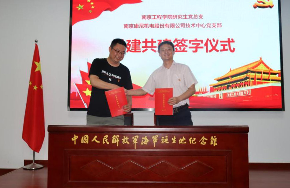 党课结束后,研究生党总支书记谭文轶与康尼机电党支部书记贡智兵分别介绍了各自基本情况,并签署了“同频共振·相融互促”党建共建协议书。他们希望双方按照“以共建促党建,以共建促合作,以共建促发展”的原则,多沟通交流、取长补短、互相学习,充分实现资源共享、共同进步;以提升党建工作水平为核心,充分发挥党员在校企合作中的作用,共同把校企合作平台打造成为真正培养优质人才、培养企业需要的人才的基地。