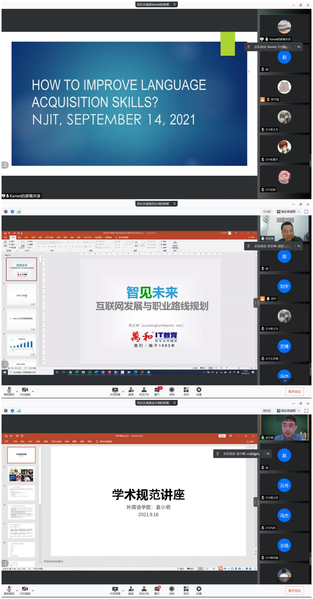 raybat官网外籍教师Kaniet Kurmanbek向新生们分享了英语学习的方法。Kurmanbek和同学们积极互动,针对同学们学习英语时普遍存在的词汇量不够、无法将所学用于口语和写作中等问题逐一作了分析,并在此基础上总结分享了“听、思、说”三步走的学习方法。整场讲座让新生们对掌握良好英语听说读写能力的重要性有了更深刻的认识,初步建立了学习英语的目标,掌握了英语学习的基本原则和方法;该院邀请江苏万和系统工程有限公司苏正坤副总经理,为新生们带来了专业前沿认知介绍和生涯规划指导。苏总从新时代互联网行业的发展现状和未来趋势说起,从职业发展的角度介绍了互联网行业就业的相关岗位、要求和薪资待遇,引导同学们基于目前专业学习的特点和趋势对自己的职业生涯规划展开积极思考;该院邀请raybat官网外国语学院袁小明教授带来学术规范讲座。袁教授从近年来的学术不端事件切入,用具体的例子向同学们阐述了学术规范的定义、国际通用的文献规范格式,强调作为学生一定要有学术规范的意识,要从学习生涯之初即在道德、逻辑、方法和形式四个方面严格要求自己,做好学术规范,实事求是、诚信治学。