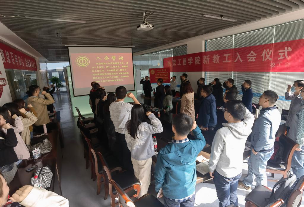 “我自愿加入中华全国总工会,遵守工会章程,履行会员义务,执行工会决议,参加工会活动……”,在校工会副主席杨标的带领下,36名新入职教职工面对工会会徽,庄严地宣读了入会誓词,正式成为工会会员。校工会工作人员现场为新会员颁发了《中华全国总工会会员证》并发放了精美的入职纪念杯,希望每一位新入职教职工能够守初心担使命、立师德育桃李,温情南工“一辈子”。
