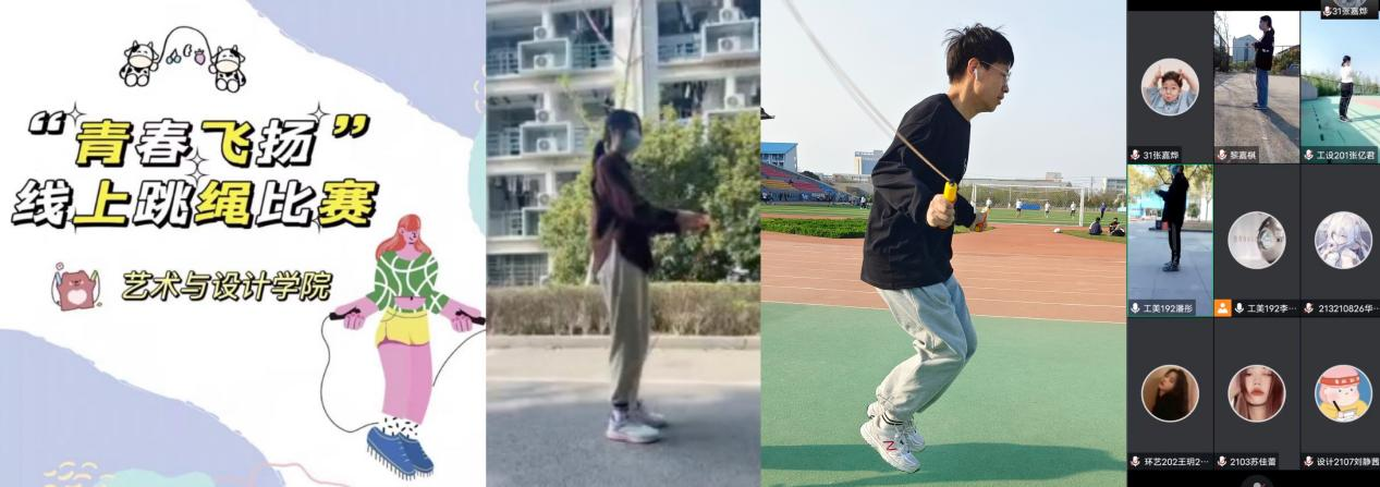 4月6日下午,艺术与设计学院举行线上跳绳比赛,点燃学生运动激情,守护学生身心健康。比赛以班级为单位参与,共50人参赛。当比赛计时开始,各选手挥舞跳绳,跃出青春光彩。经过评比,设计2104班杨中源、设计2106班杜佳荣获一等奖,设计2106班徐靖达等4名同学荣获二等奖,视传192班罗帮艳等6名同学荣获三等奖。
