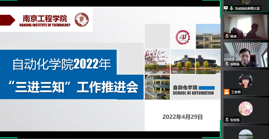 4月29日,自动化学院召开“三进三知”专题实践活动推进会,校党委常委、副院长朱晓春,该院党委书记屠立忠,院长陈桂以及全院所有第二班主任、班主任、学工人员参加了会议。