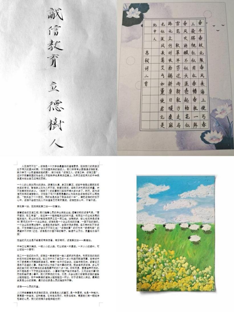 该院采取寓教于乐的方式,组织开展资助诚信作品征集活动,将诚信教育与大学生“德智体美劳”综合素质培养紧密联系。同学们大显身手,各展才艺,“诚信”作为中华民族的传统美德,通过书法、征文、漫画、短视频作品一一呈现,这既丰富了同学们的课外生活,也在无形之中营造出浓厚的校园诚信氛围。