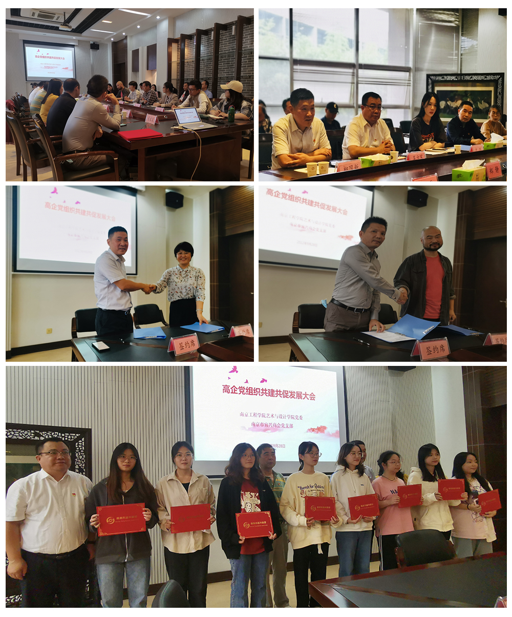 会上,双方共同签署校企党组织共建共促备忘录,学院院长郑静教授代表学院与商会所属企业南京商韵文化传播有线公司签署校企合作备忘录;商会党支部秉承宜兴崇文重教传统,奖励表彰学院6名宜兴籍优秀学生和2名优秀学生党员。会后,商会党支部还参观了由艺术与设计学院承办的“以信仰为名—献礼二十大 奋进新征程”主题海报展。