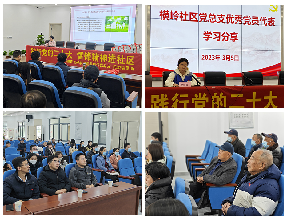 习近平总书记在党的二十大报告中指出:“广泛践行社会主义核心价值观,弘扬以伟大建党精神为源头的中国共产党人精神谱系。”雷锋精神正是中国共产党人精神谱系的重要组成部分。3月5日是第60个学雷锋纪念日,直属单位党总支联合校民盟委员会前往江宁淳化街道横岭社区,通过健康保健、推广阅读、理论宣传等形式开展联学共建以及一系列服务社区公益活动,以实际行动践行党的二十大,让雷锋精神走出校园、落地生根。