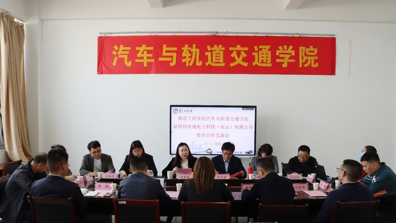 为进一步学习贯彻落实党的二十大精神,充分发挥党建引领作用,持续加强校企合作共同发展,4月11日上午,汽车与轨道交通学院与延锋伟世通电子科技(南京)有限公司开展校企合作与支部共建活动。学院党政领导带领延锋伟世通投资有限公司党委书记王瑾婧、延锋伟世通电子科技(南京)有限公司总经理曹乐千、副总经理徐祖龙一行,实地参观考察了学院实验室、学校大学生创业园并开展交流座谈。